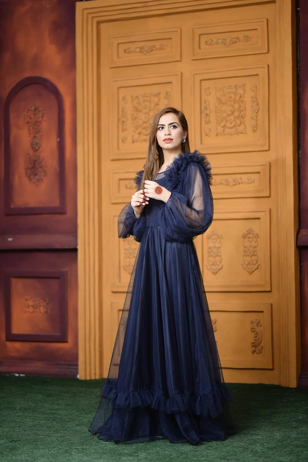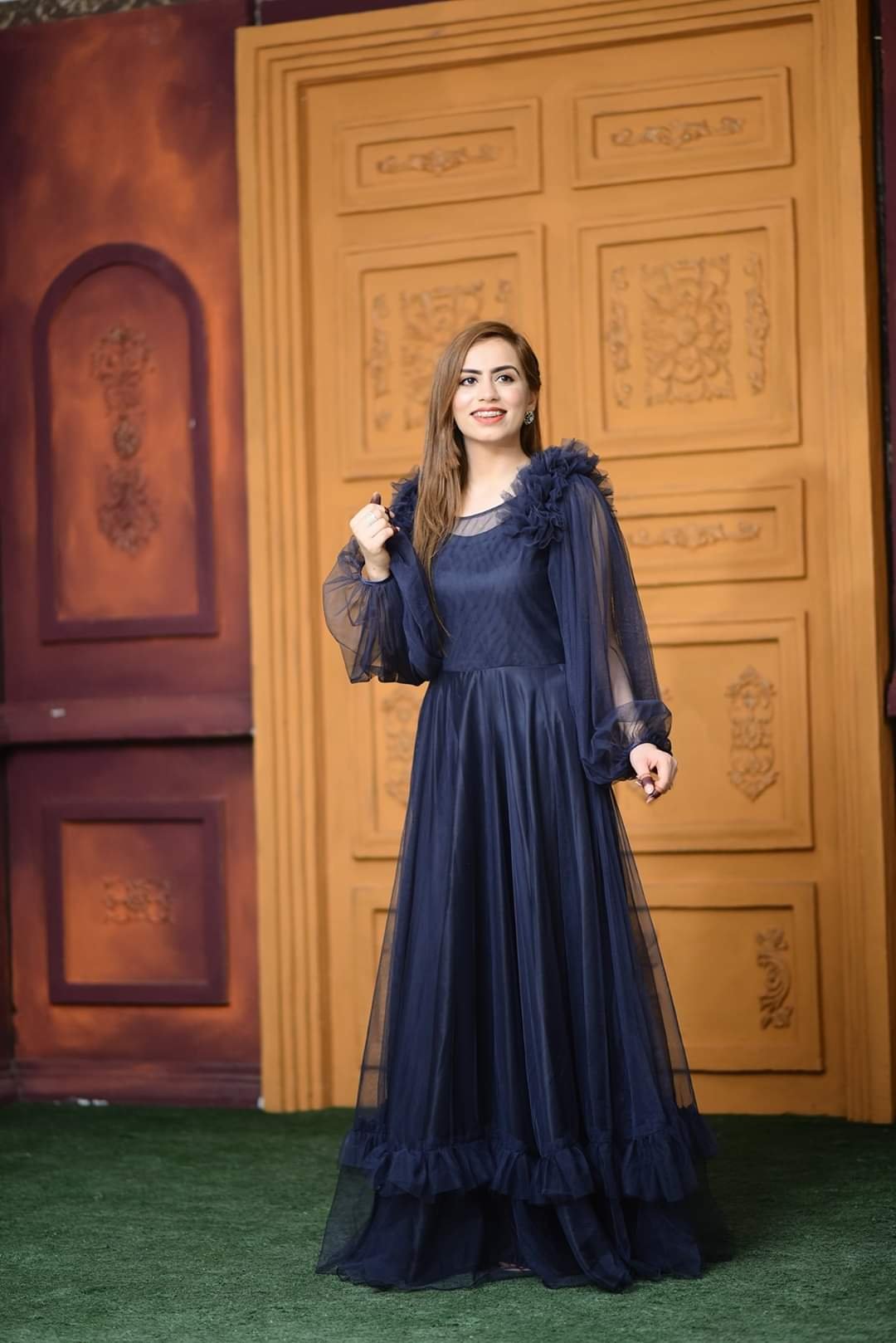 Navy Blue Frill Maxi