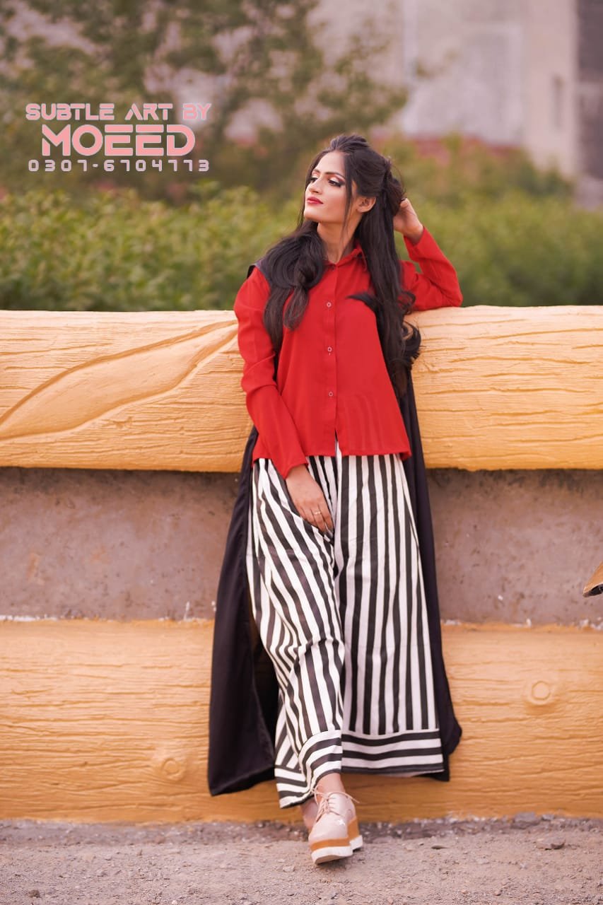 Red Shirt & Zebra Lining Trouser With Black Upper (03 Piece)